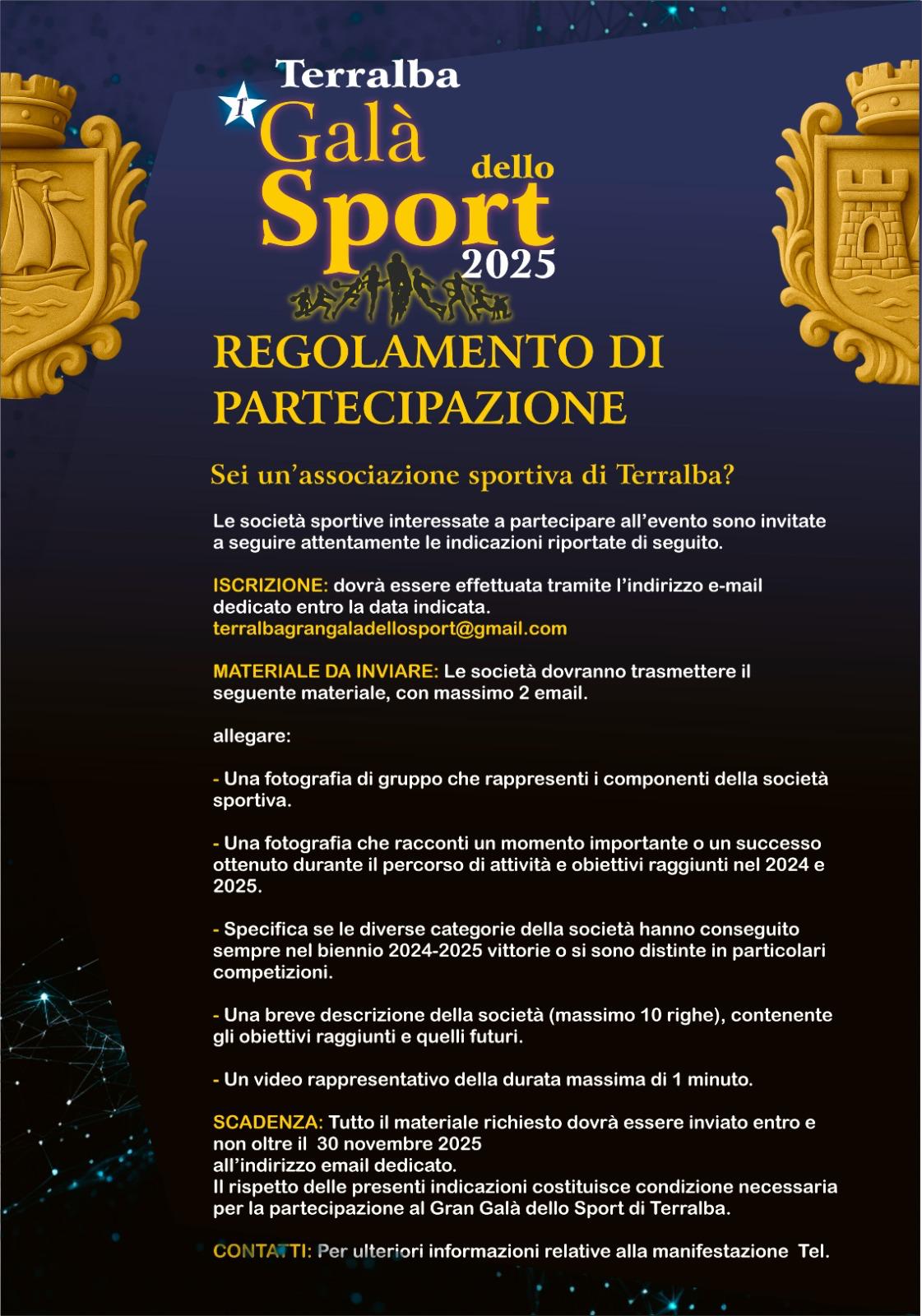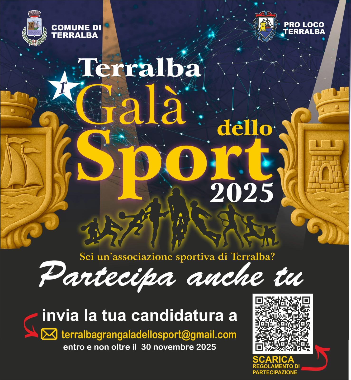 Il Comune di Terralba, in collaborazione con la Pro Loco Terralba, invita le associazioni sportive di Terralba a presentare la candidatura per il 1° Galà dello Sport di Terralba 2025.
