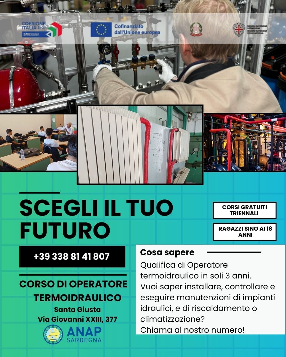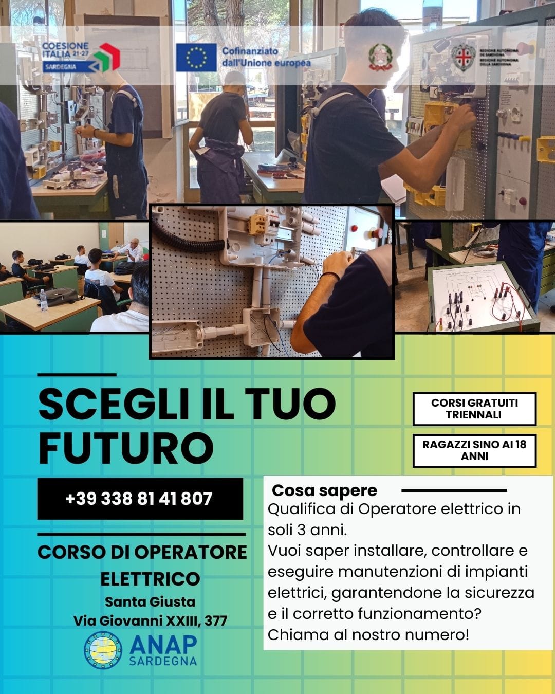 L’Amministrazione Comunale informa la cittadinanza che sono aperte le iscrizioni per i percorsi di Istruzione e Formazione Professionale promossi dall’ente ANAP Sardegna E.T.S. per il triennio 2026/2029.